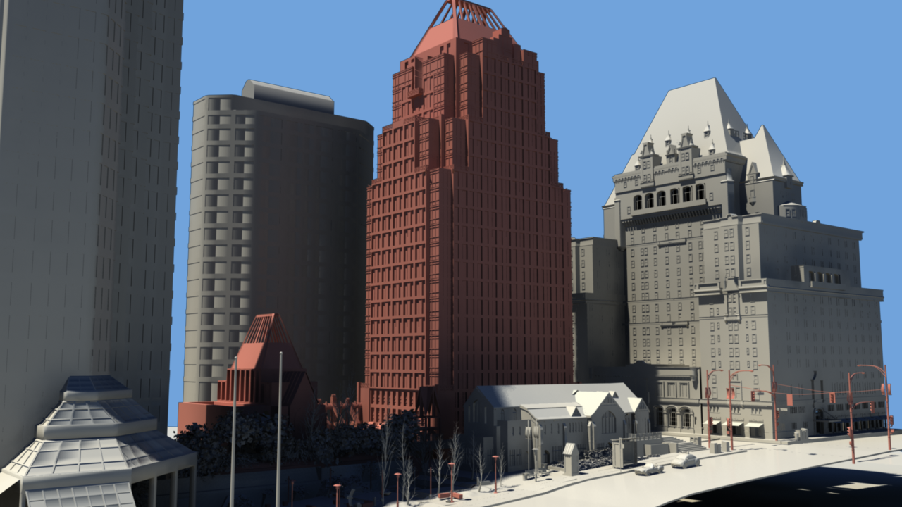 3D Modeling City Block modeled with a group. My work is highlighted in red. Cathedral Place and accessories. Constructor Model. Conquistador's Gun.